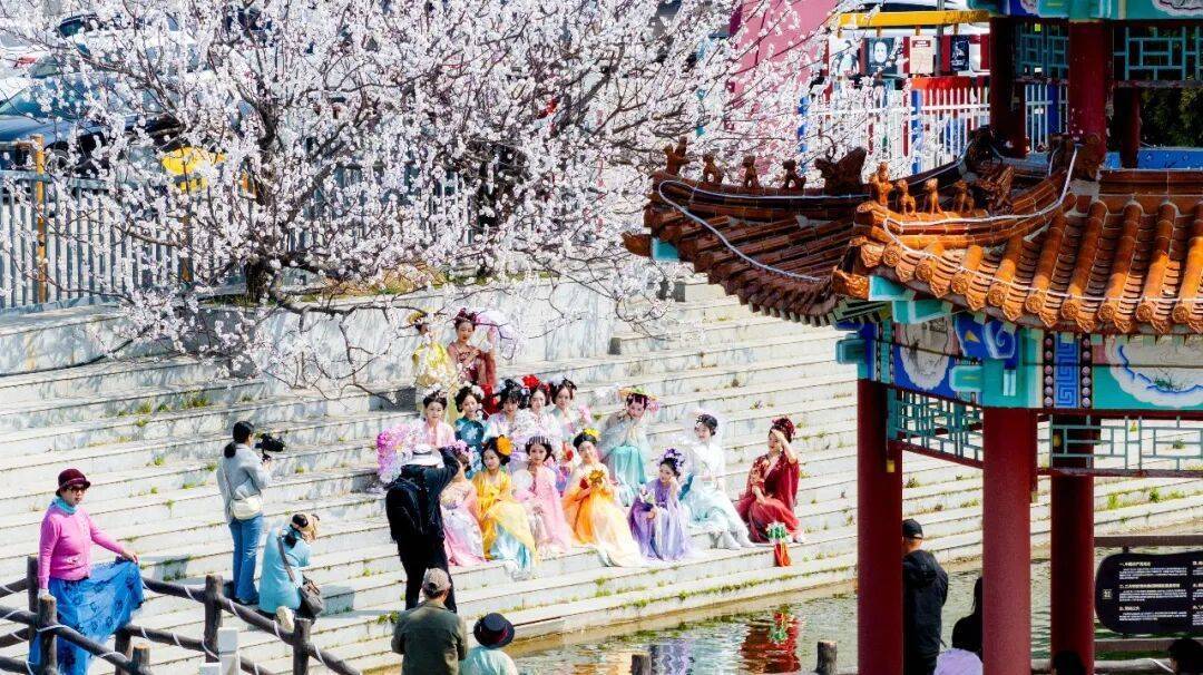 不少游客也纷纷换上汉服,穿梭在杏林间、村舍旁,沉浸式融入这片春日胜景。“本来只是想来赏杏花,没想到惊喜这么多!”游客吴帆笑着说,“‘花神’巡游有韵味,活动有趣味,在乡村感受到了满满的春日仪式感!”